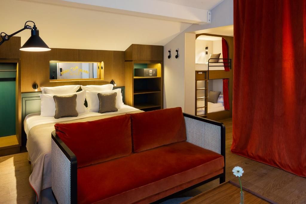 Family Room- dla 2 dorosłych i 2 dzieci o powierzchni około 21m2. Pokój posiada: duże łóżko i aneks z piętrowymi łóżkami (2×90×200 cm). Wyposażenie jak w pokojach standardowych + aneks dzieci.